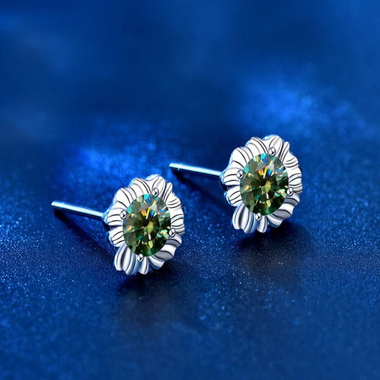 925 Silver Diamond Moissanite Green Sunflower Earrings