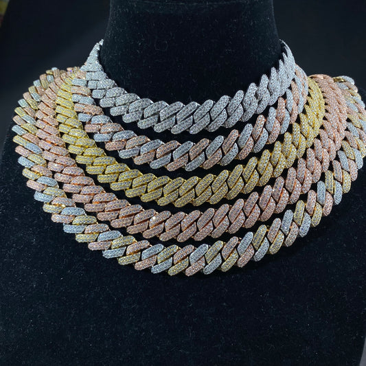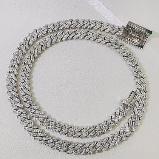 925 silver Moissanite 8mm Prong Cuban chain and Bracelet