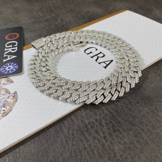 Moissanite Diamond S925 Silver 12mm Prong Cuban Chain Bracelet